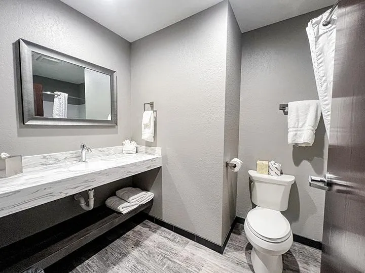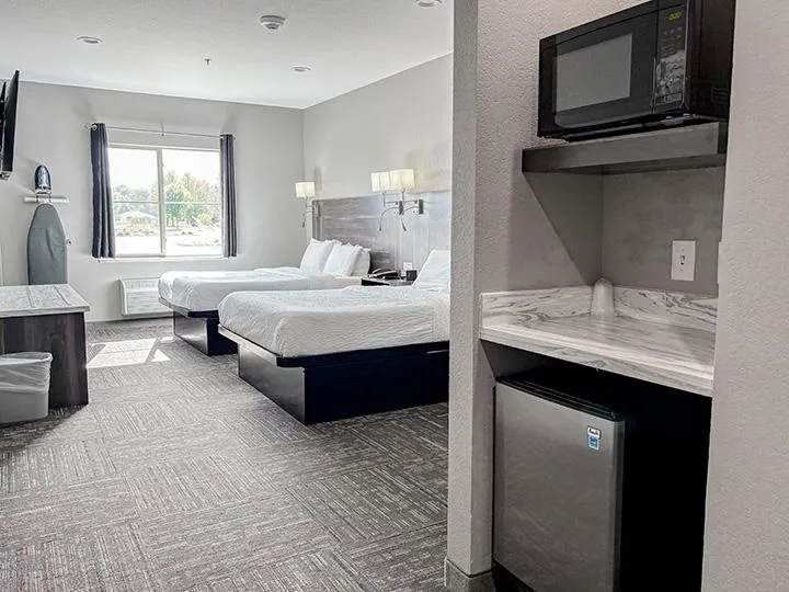 Our Double Queen Premier rooms take comfort up a notch with thoughtful touches that make your stay even more enjoyable. Along with two queen beds for a restful night’s sleep, you’ll find a sleek counter and storage space, plus a modern bathroom designed with convenience in mind. Whether you’re here with family, friends, or for a quick getaway, the Double Queen Premier offers a stylish and comfortable space to recharge during your stay at Metropolis Resort.
