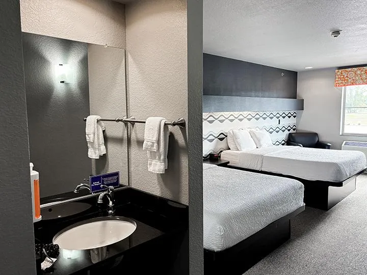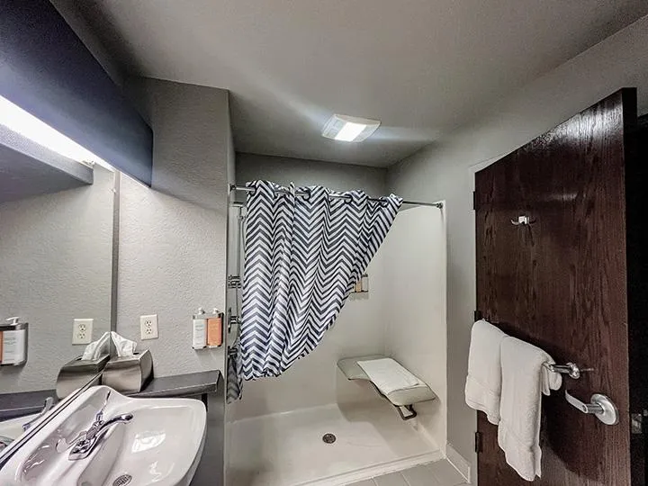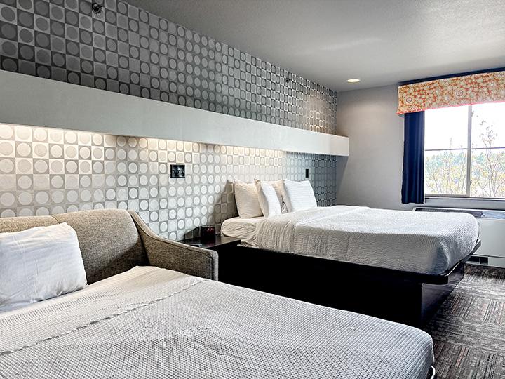 Our Superior King Accessible rooms are designed to offer both spacious comfort and ease of access. Each room features a king bed and a queen sofa sleeper, giving you flexible sleeping options for couples, families, or small groups. A breakfast bar with stools provides a spot for quick meals or downtime, while the accessible bathroom and additional vanity sink make getting ready simple and convenient. Thoughtfully arranged for comfort and functionality, the Superior King Accessible ensures every guest can enjoy a relaxing stay at Metropolis Resort.
